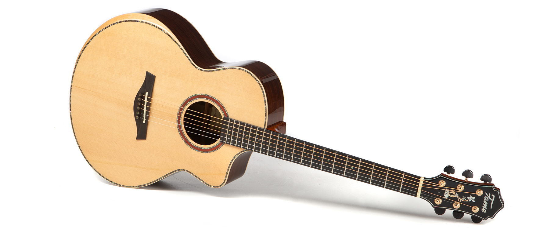 Die Fame Koa Standard überzeugt mit warmem, lebendigem Klang und edler Optik dank Koa-Korpus in komfortabler Grand-Auditorium-Bauweise. Cutaway, Armrest und Tonabnehmersystem machen sie zum vielseitigen Instrument für Bühne und Studio.