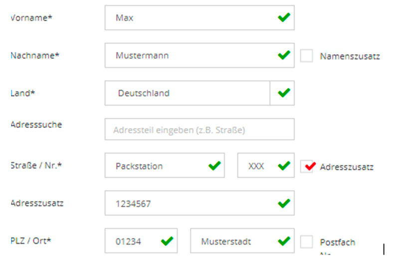 Um Ihre Sendung an einer Packstation/Postfiliale zu empfangen, geben Sie diese in drei einfachen Schritten als Lieferadresse an.